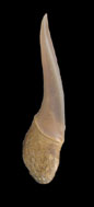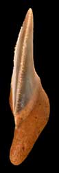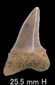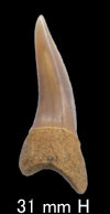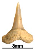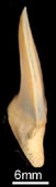 側歯は広い三角形の歯冠で下顎では真っ直ぐ、上顎では後方に曲がる。側歯では歯根は伸展し、やや平ら。側縁は真っ直ぐで基底線はへこむ。エナメロイドはすべての歯で、全く滑らかである。